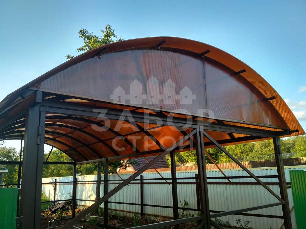 Поэтому компания "НавесСтрой" настоятельно рекомендует не экономить, а усилить каркас арочного навеса более жёсткими профилями с увеличенной толщиной металла и количеством несущих ферм.