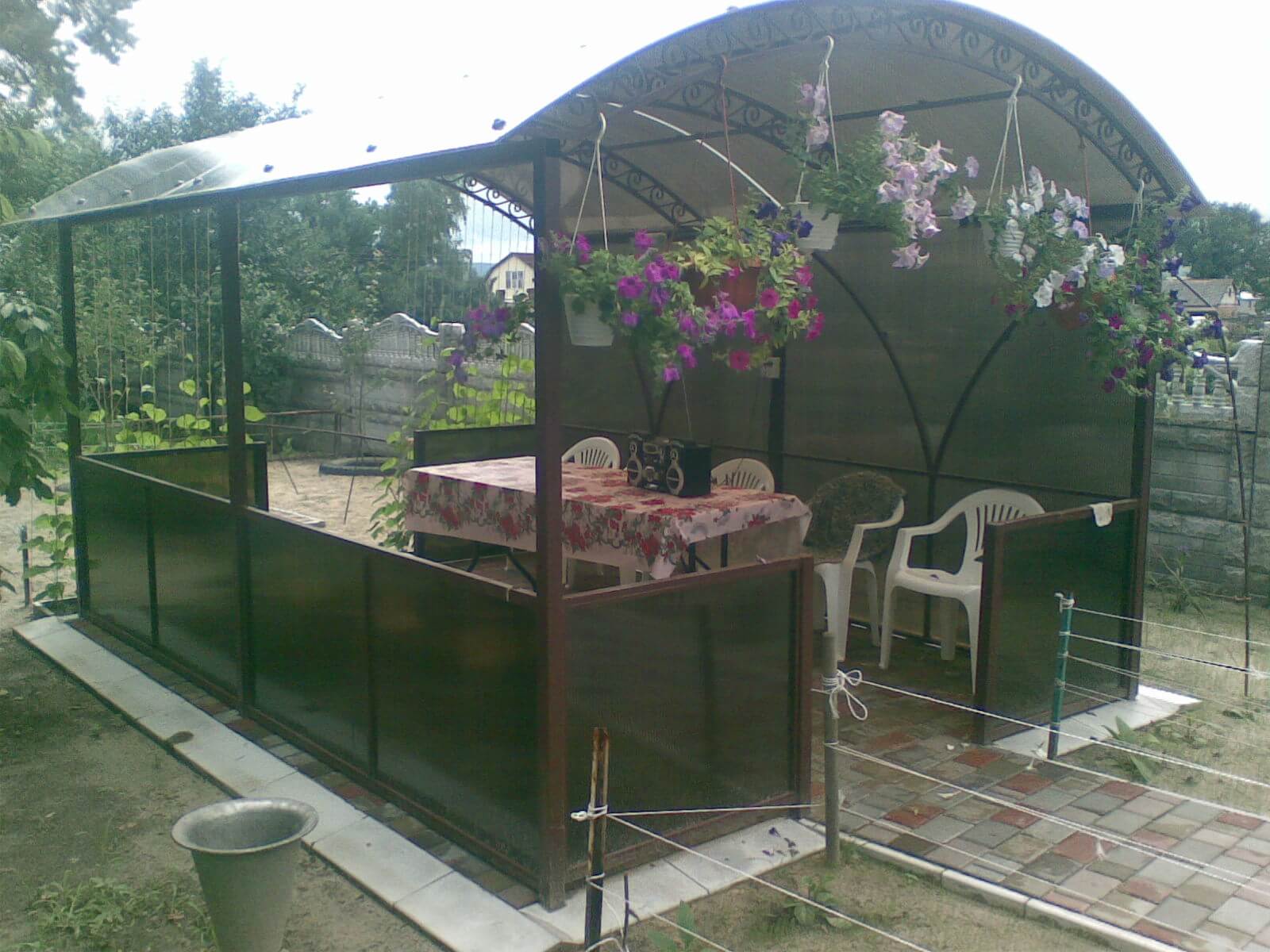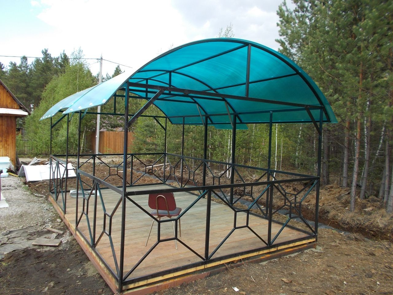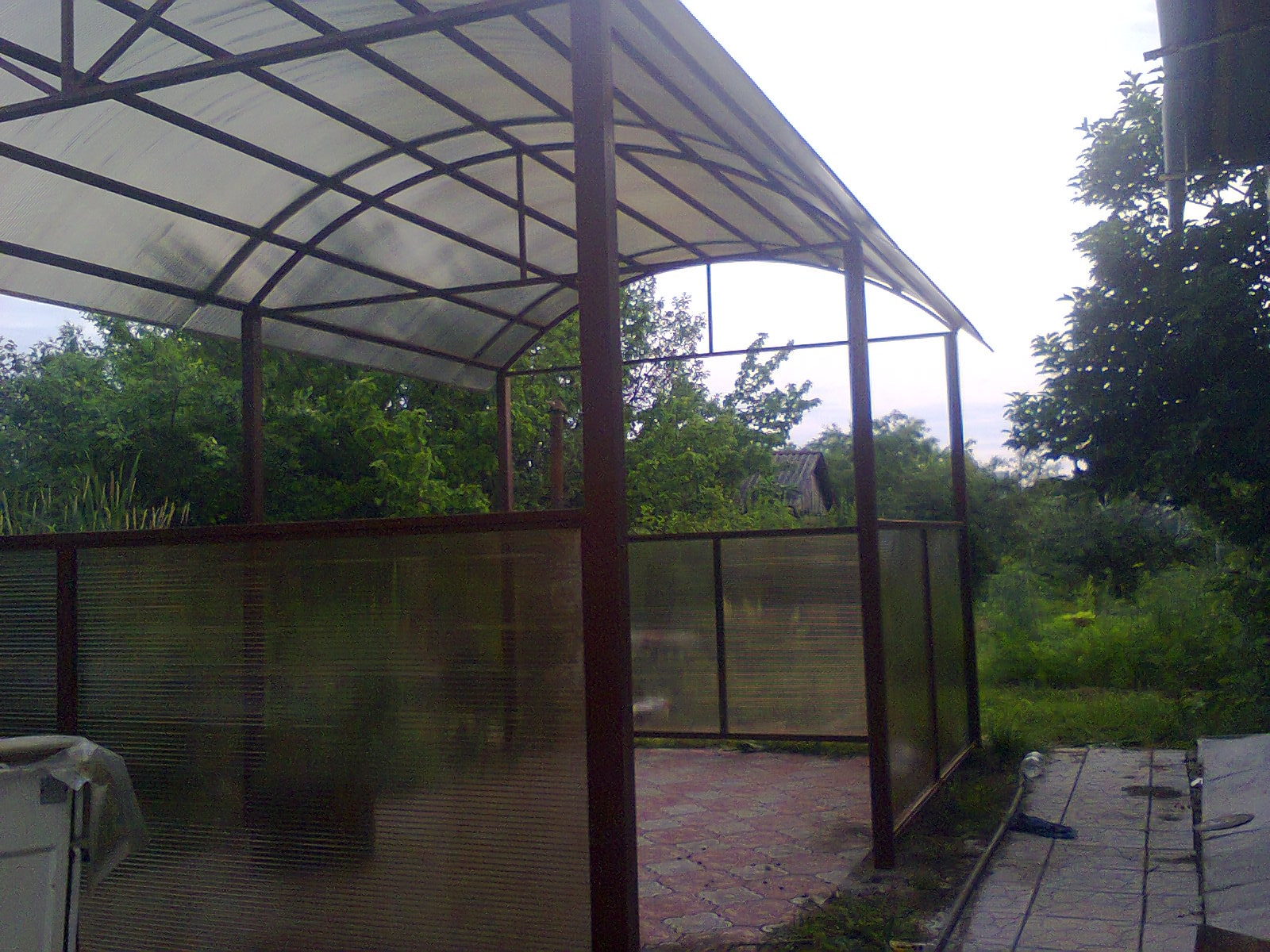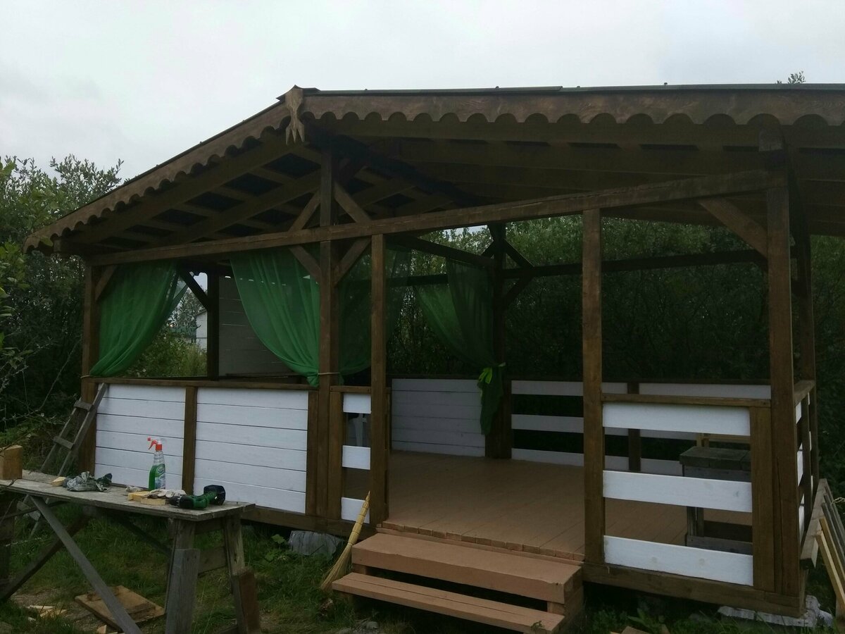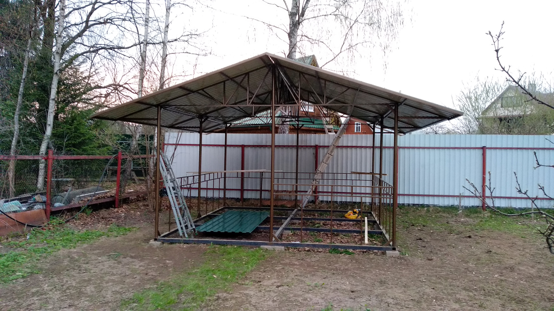 За день на даче изготовили арочный навес 5 на 7 с покрытием поликарбоната. Привезли уже готовые крашенные фермы и весь остальной материал. Все за собой убрали и увезли мусор. Молодцы!