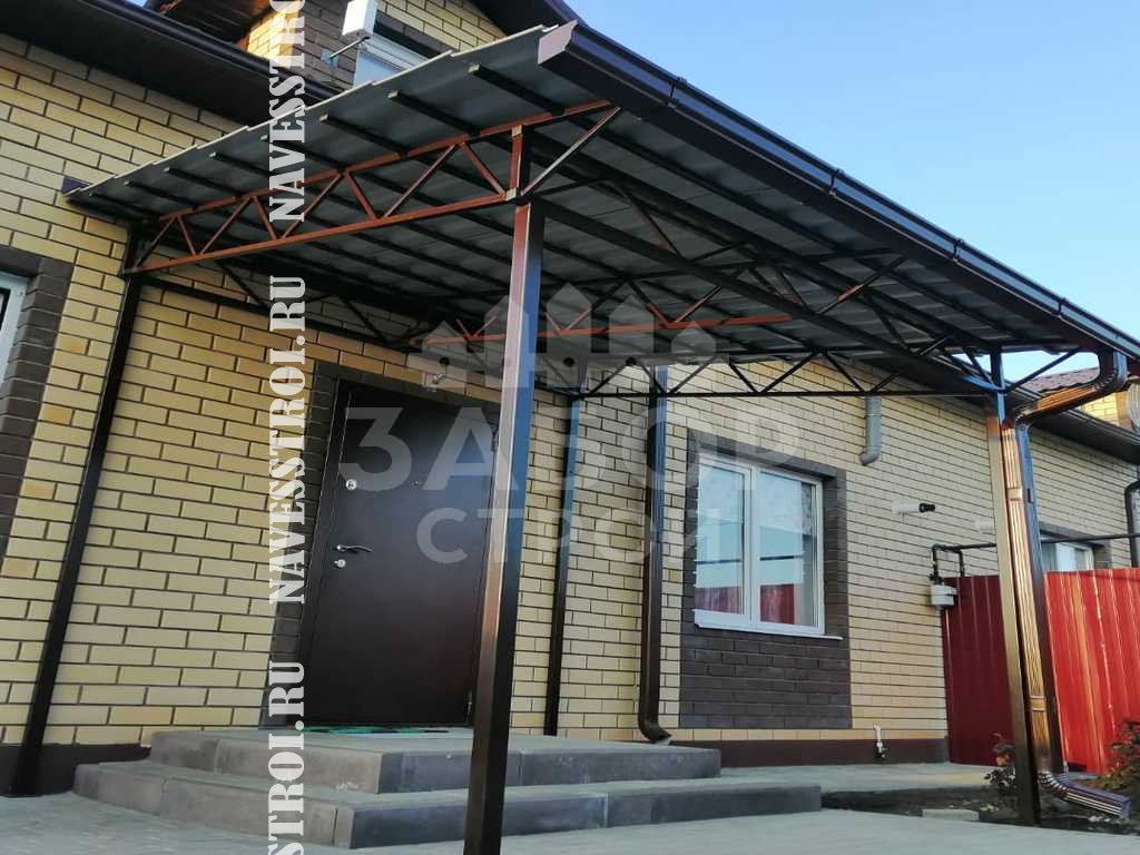 Поэтому компания "НавесСтрой" настоятельно рекомендует не экономить, а усилить каркас навеса из металлочерепицы более жёсткими профилями с увеличенной толщиной металла и количеством несущих ферм.