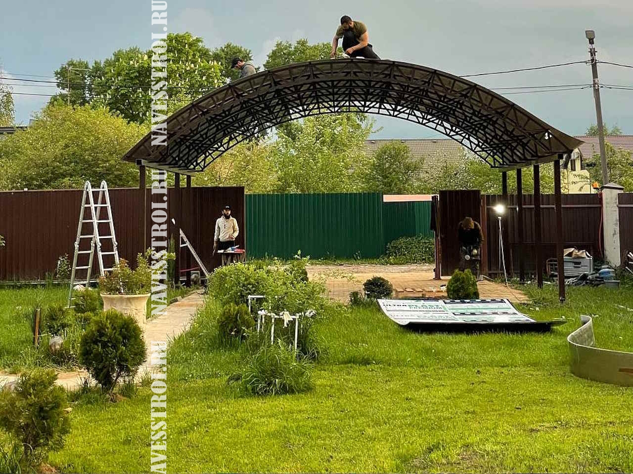 За день на даче изготовили арочный навес 5 на 7 с покрытием поликарбоната. Привезли уже готовые крашенные фермы и весь остальной материал. Все за собой убрали и увезли мусор. Молодцы!
