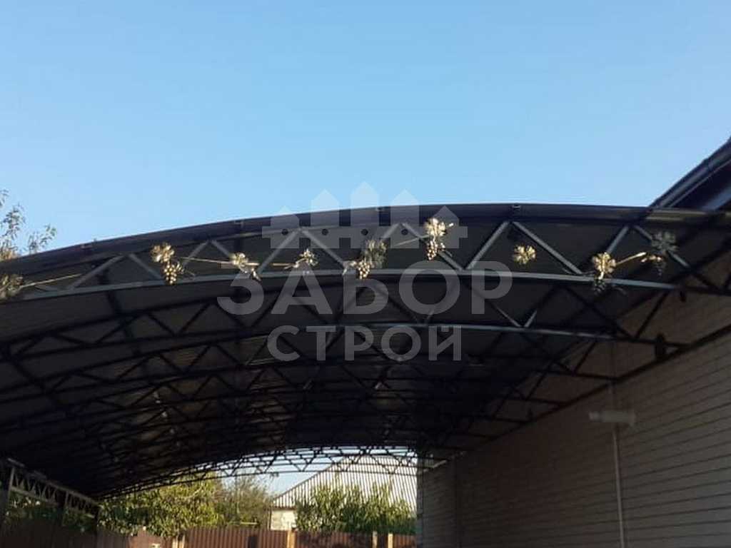 Поэтому компания "НавесСтрой" настоятельно рекомендует не экономить, а усилить каркас полуарочного навеса более жёсткими профилями с увеличенной толщиной металла и количеством несущих ферм.