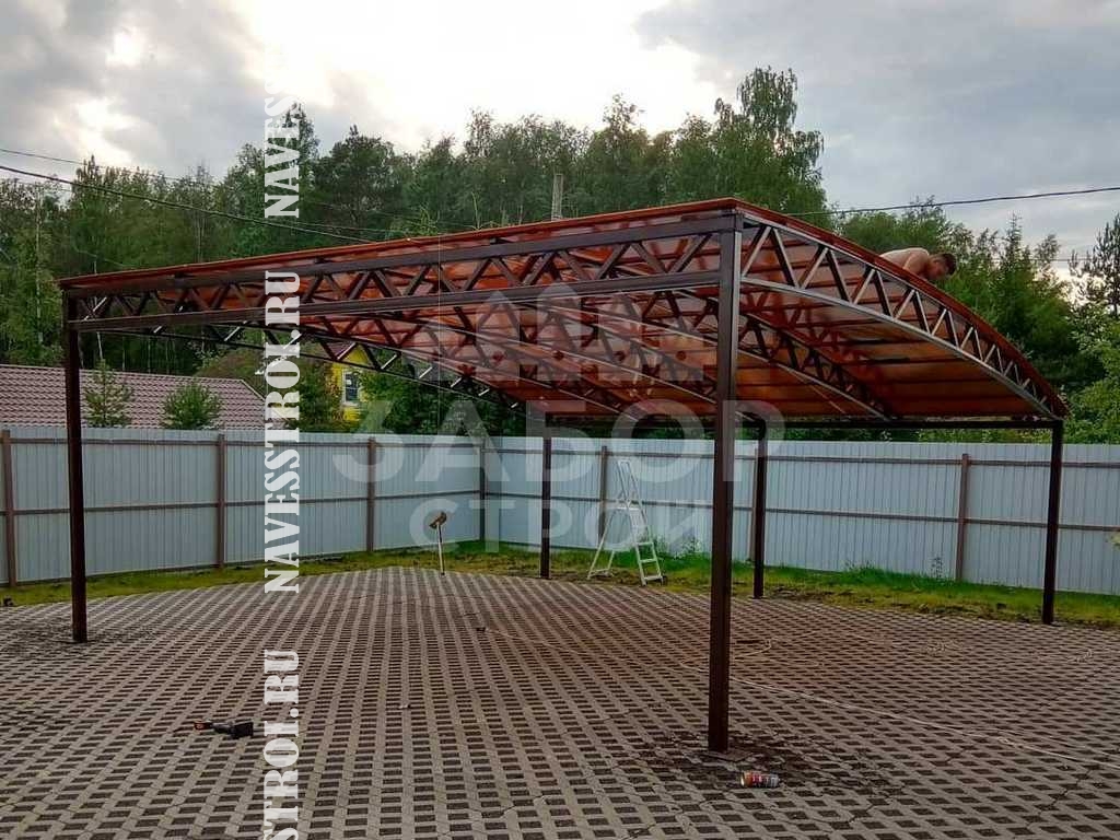 За день на даче изготовили арочный навес 5 на 7 с покрытием поликарбоната. Привезли уже готовые крашенные фермы и весь остальной материал. Все за собой убрали и увезли мусор. Молодцы!
